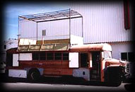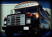 The Cosmic Sled is SONIC JOYRIDE's one of a kind, custom welded tour bus.